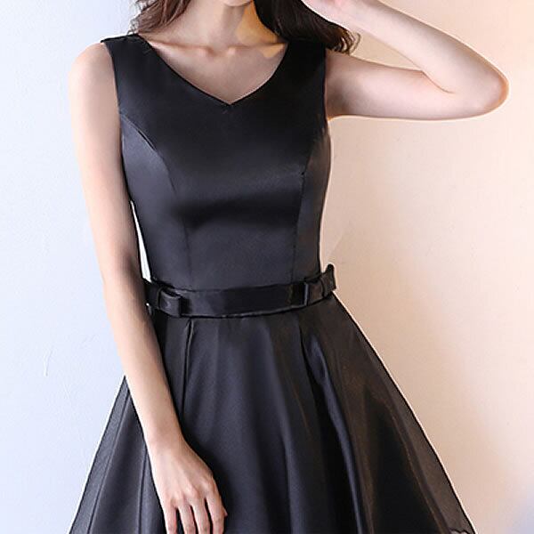 バック リボン ノースリーブ フレア ワンピース