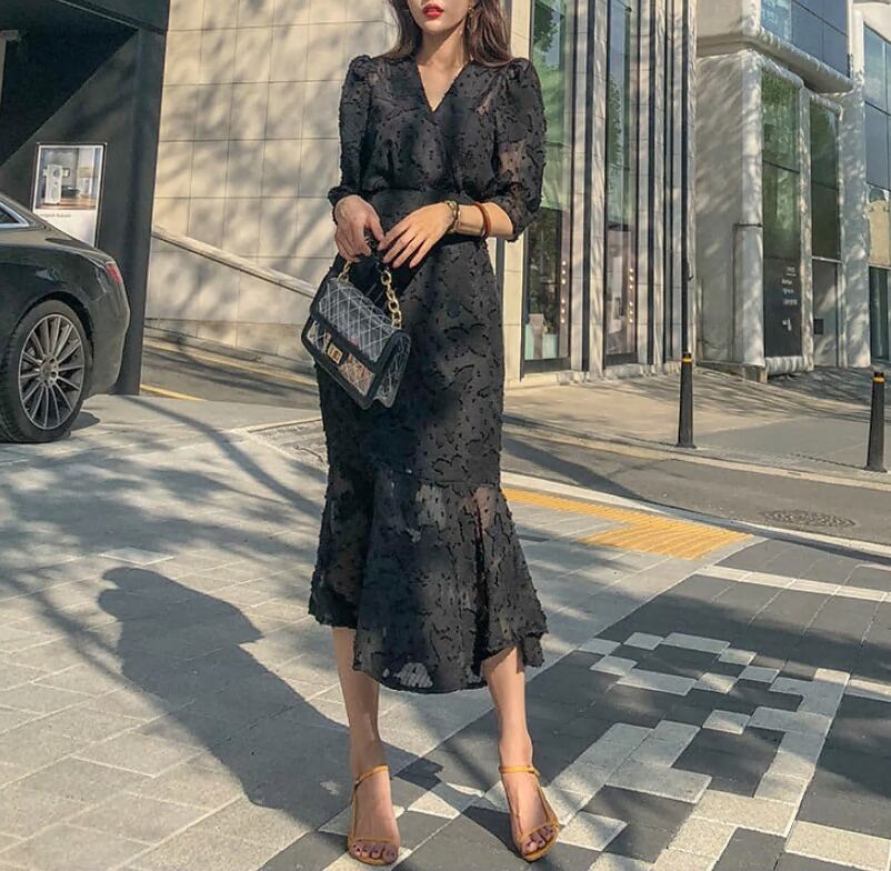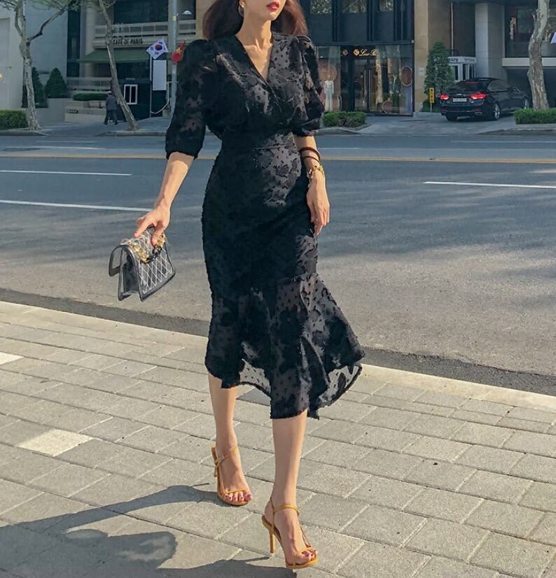 ☆マーメイド☆ パーティードレス パフスリーブ シースルー