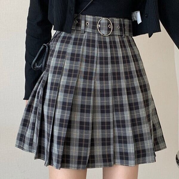 プリーツスカート チェック柄 Aライン ハイウエスト