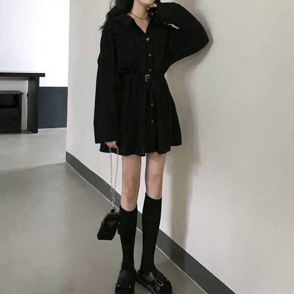 ヴィンテージフレンチVネックヘップバーンスタイル長袖ワンピース