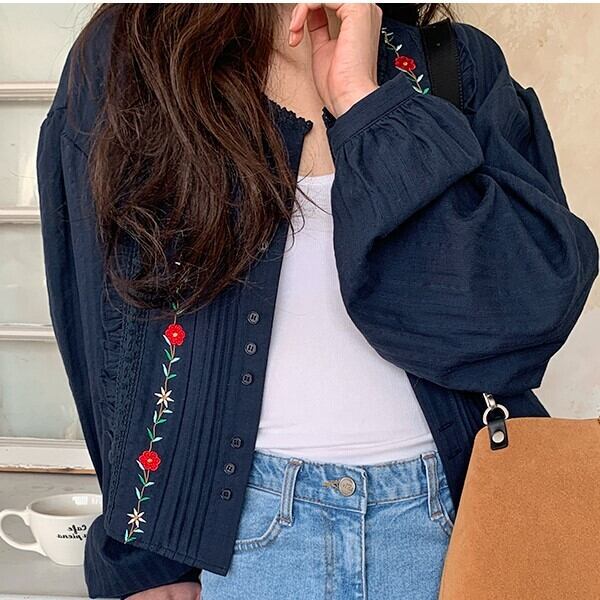 ヴィンテージ刺繍パッチワーク シャーリングロングスリーブシャツ