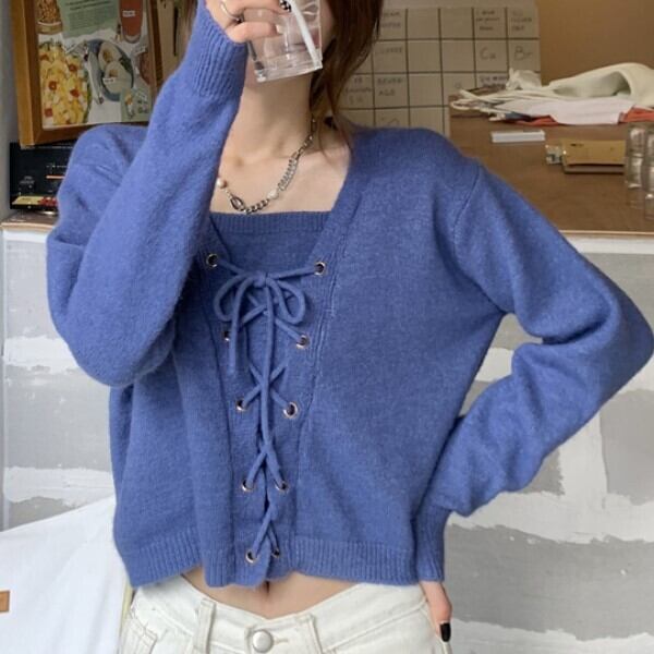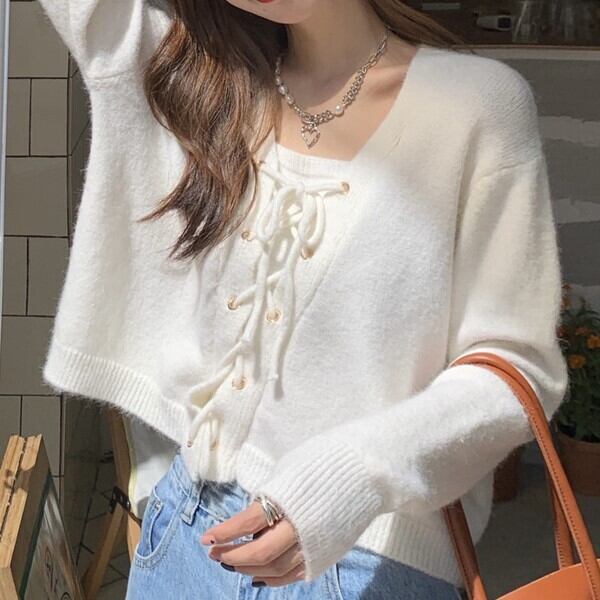 ゆったりフィットで編み上げのデザインがかわいらしい一着です