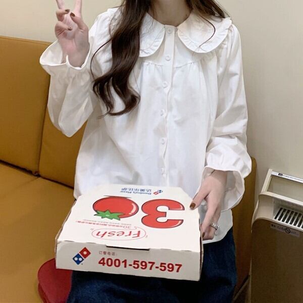 ドールネック 長袖 シャツ ルーズフィット フレンチスイートデザイン