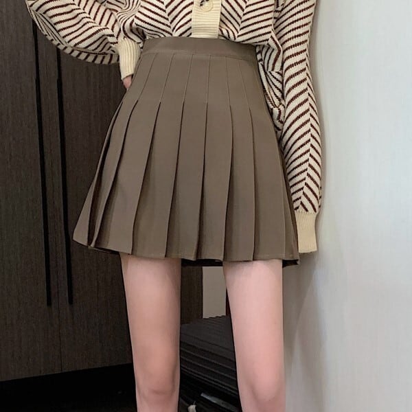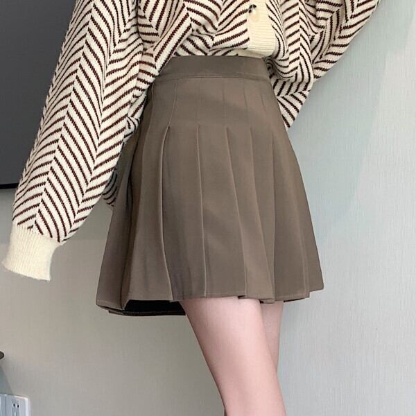 ブラウン 秋冬 ハイウエスト Aライン プリーツスカート