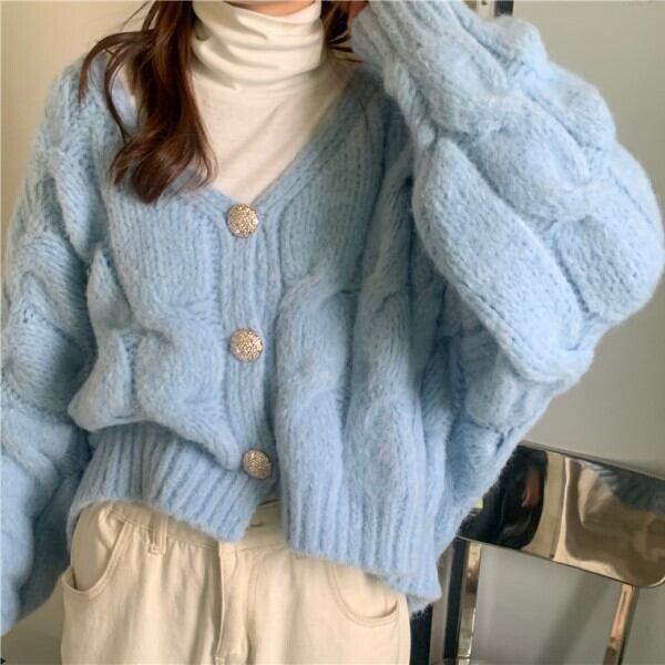 厚手 ケーブルニット もこもこ カーディガン ルーズフィット トップス