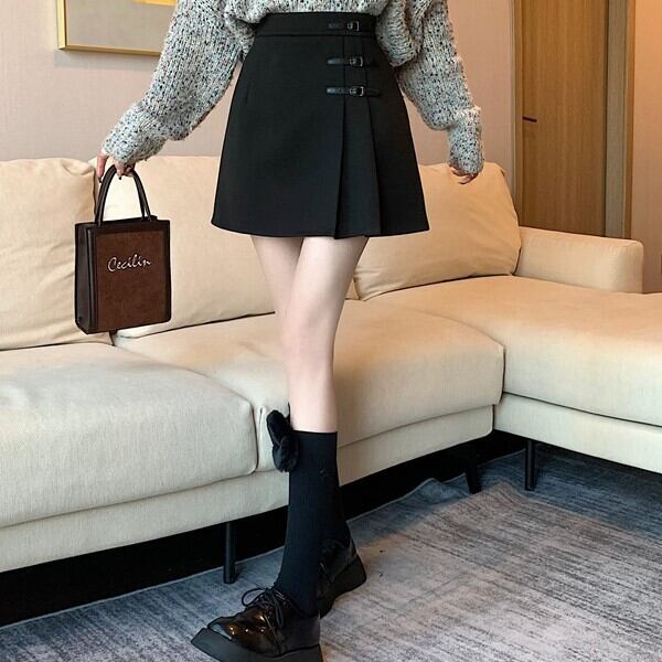 ハイウエスト スリムフィット プリーツ スカート Aライン 秋冬デザイン