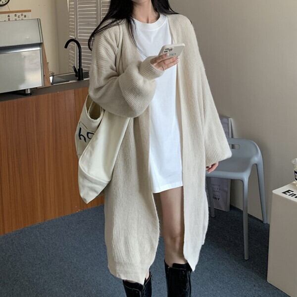 ニット カーディガン コート Vネック ルーズフィット ロング カジュアル