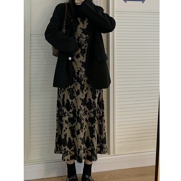 キャミワンピース ビンテージブラック ノースリーブ ワンピース ロングスカート