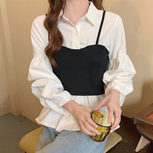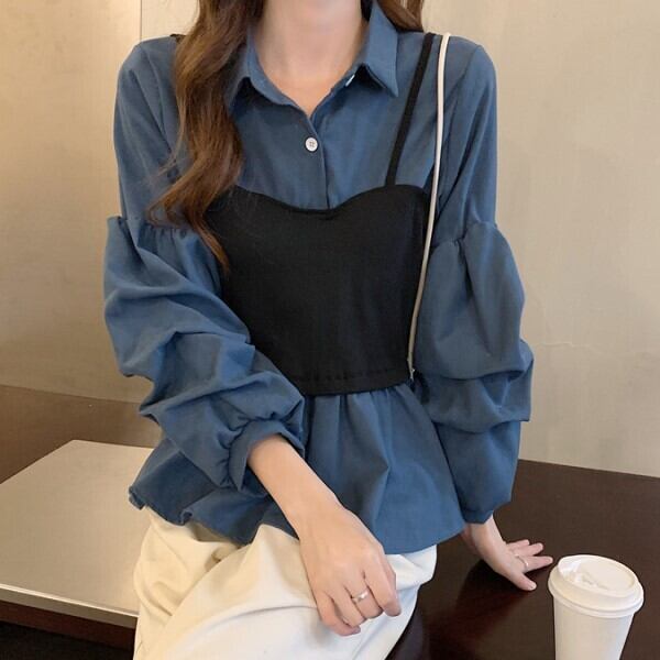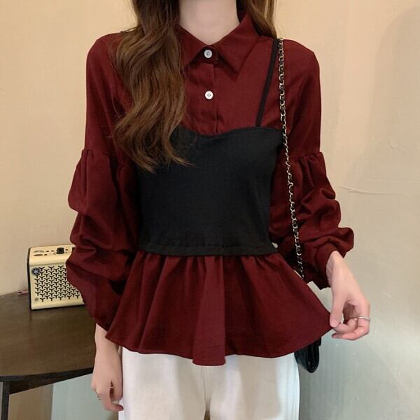フレンチ ヴィンテージ ルック ツーピース風 長袖 シャツ トップス