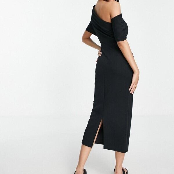 【ASOS DESIGN】ブラック ワンショルダー ペンシルドレス バックスリット